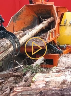L’étape suivante est le broyage : le bois coupé est transformé en plaquettes forestières.
