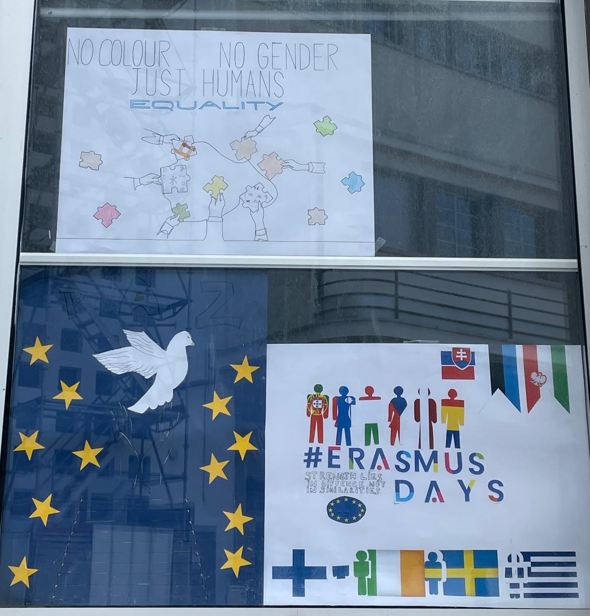 En l’occurrence, pour célébrer ces journées, notre lycée s'est paré des couleurs de l’Union européenne ainsi que de celles des pays participants au programme Erasmus+. Banderoles, posters réalisés par les élèves, affiches, cartes postales ont été apposés de-ci de-là dans l’établissement.